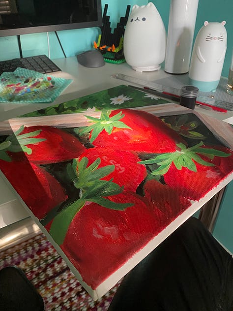 Started painting once again! I made a strawberry painting to celebrate the beginning of spring <3 Super excited to see less snow this season!